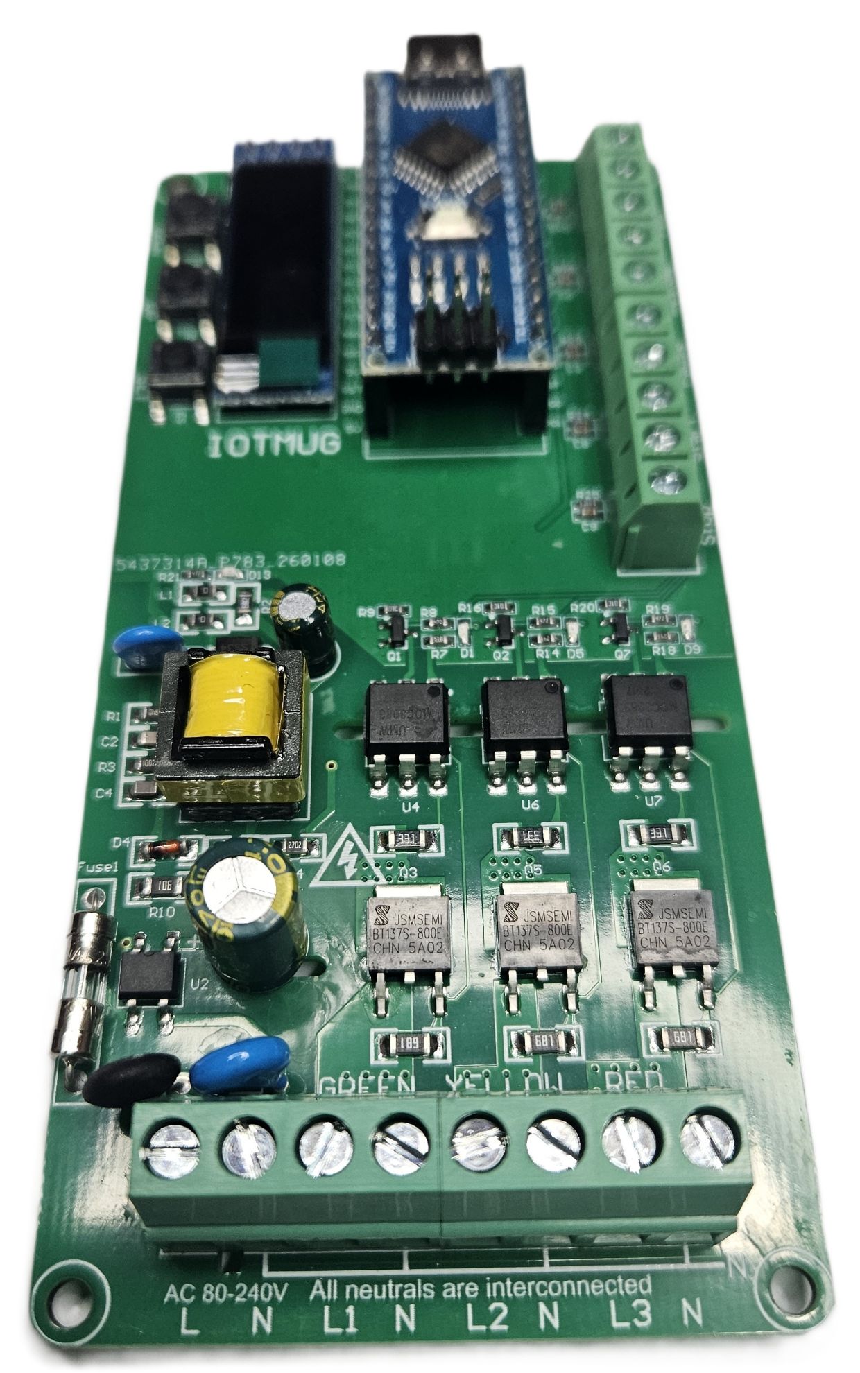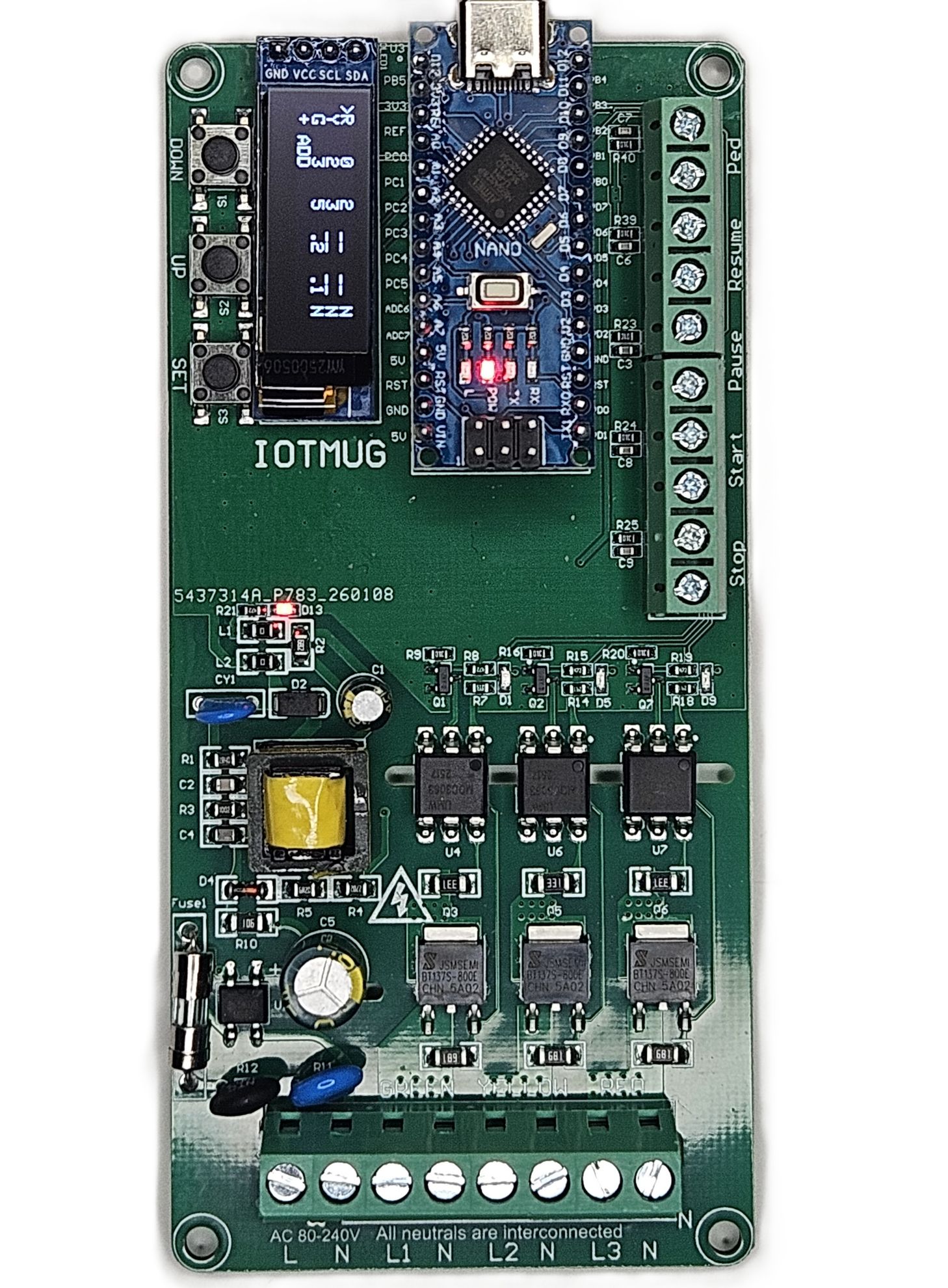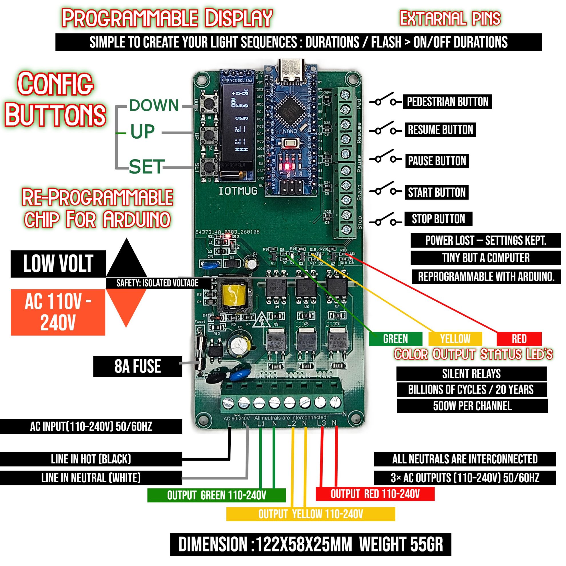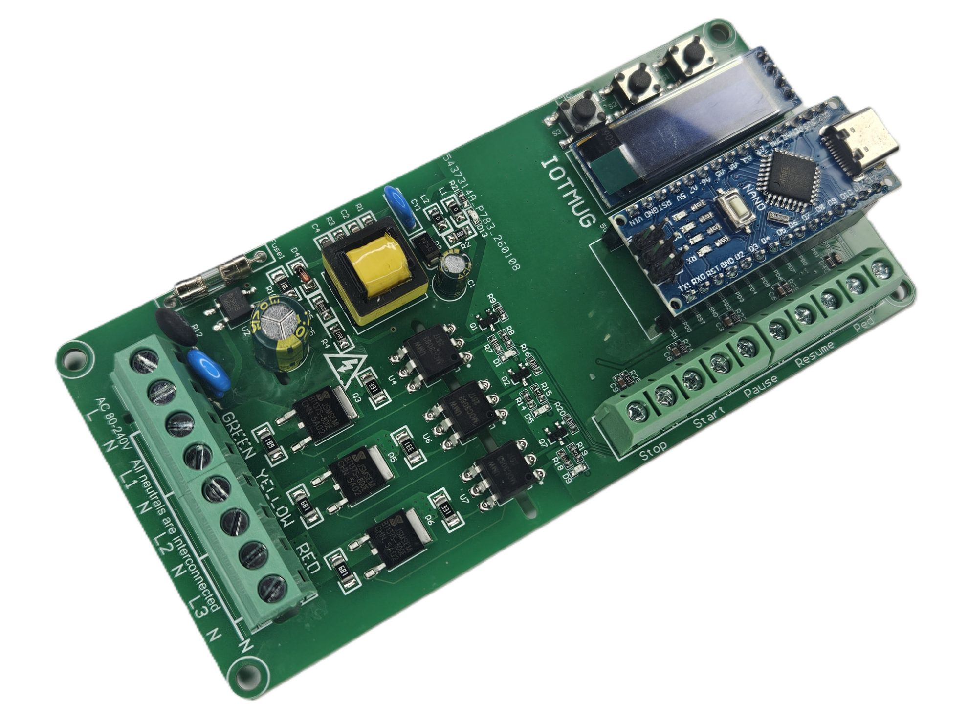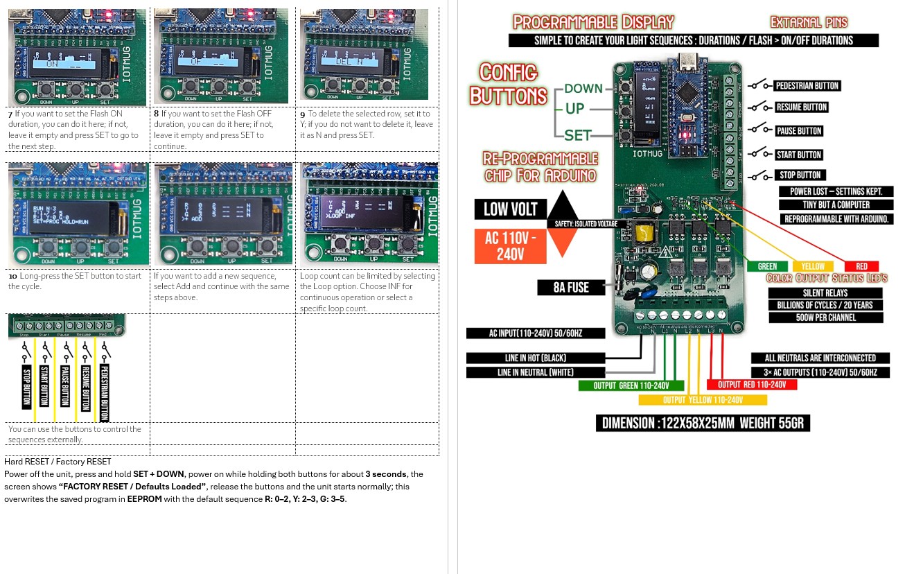 3 Channel Programmable Custom AC Light VOLT Sequncing Board with OLED Display, External Control Inputs, Arduino-Compatible, Custom Timing & Flash Modes Sequencer - Traffic Light Controller