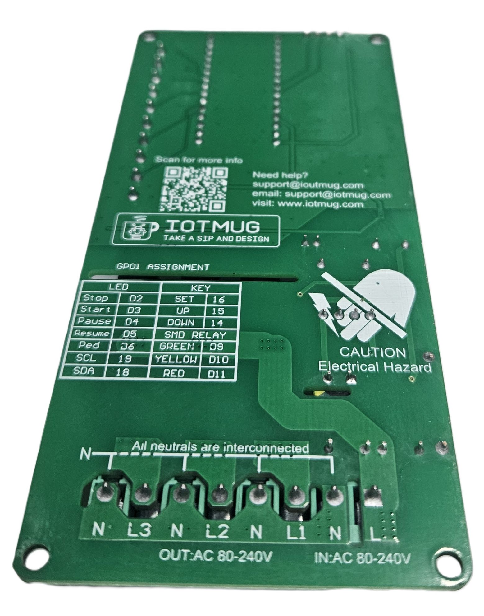 For makers, integrators, and advanced hobby users, this board is Arduino-compatible and reprogrammable, so you can go beyond the default behavior and build your own custom logic. The PCB includes printed GPIO assignments on the back, making it easier to modify, debug, and develop your own sketch. Built-in EEPROM memory keeps your saved settings after power loss, while external control inputs make operation flexible for panel buttons or custom enclosures.