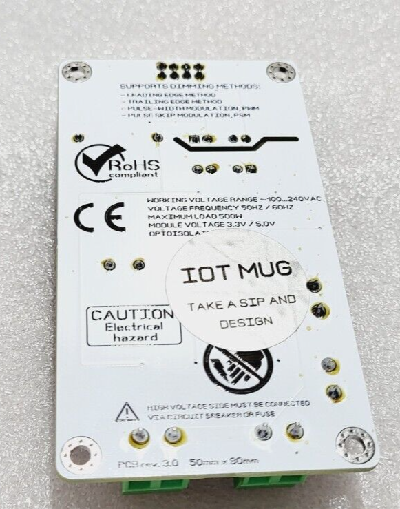 MOSFET Trailing Edge AC light dimmers are compatible with all popular Arduino, Raspberry, ESP8266, ESP32, Adafruit boards and all microcontrollers.