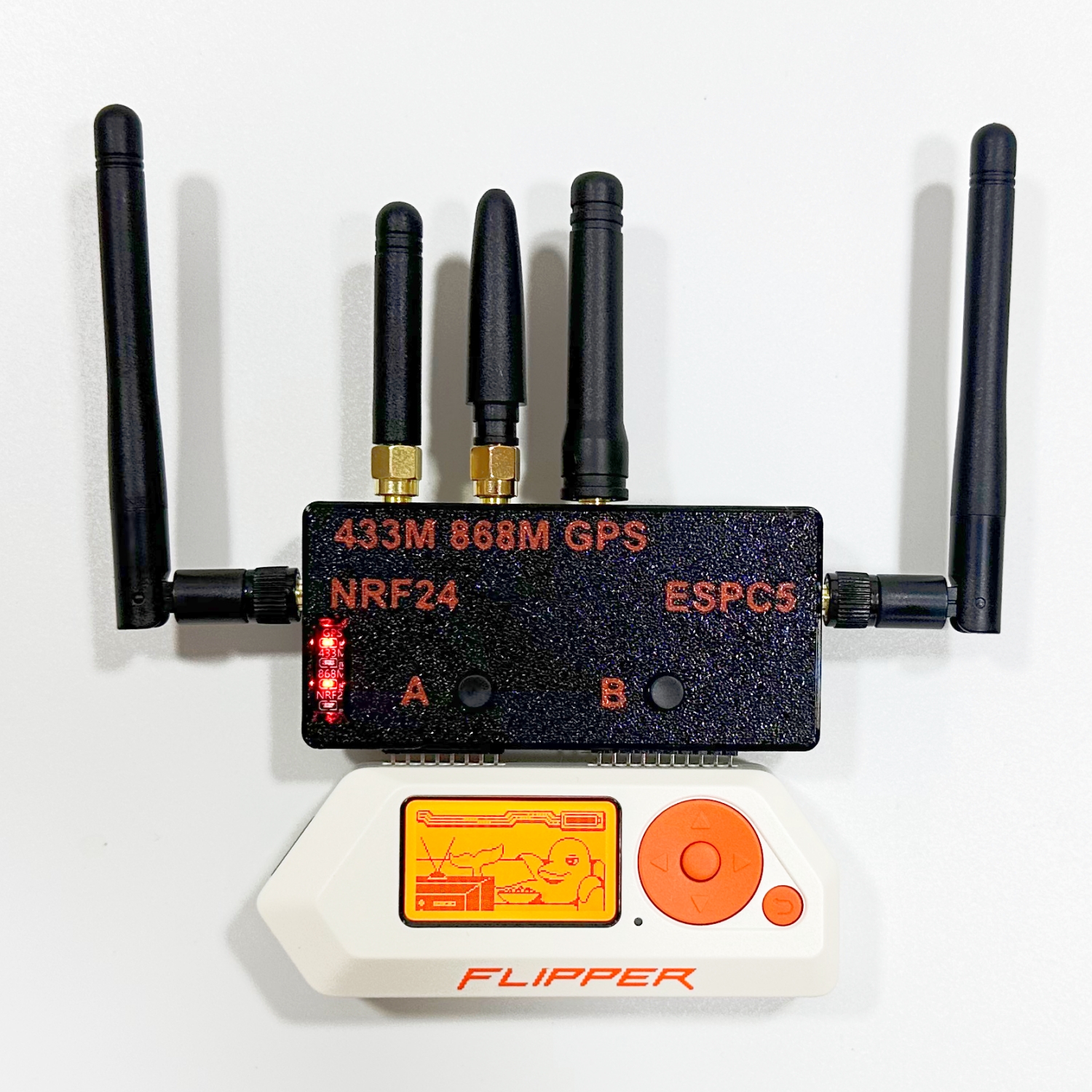 With a high-power 20dBm nRF24 module and external SMA antenna connections, this board is designed for convenient connectivity and easy integration into portable setups. Its multi-module design helps reduce clutter while expanding the capabilities of your Flipper Zero with one streamlined accessory.